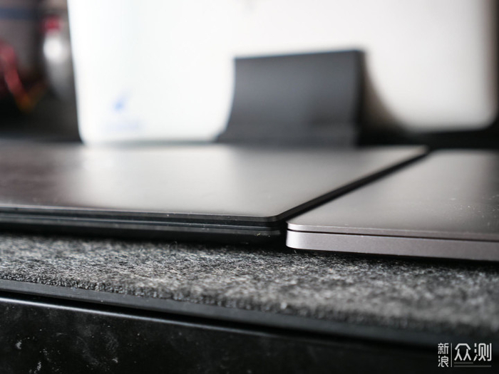 本子本体,因为窄边框的设计,尺寸控制的不错,屏占比令人满意,但厚度上有所放飞,用了边缘薄肚子厚的取巧方法,视觉看着还行,实际偏厚