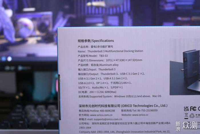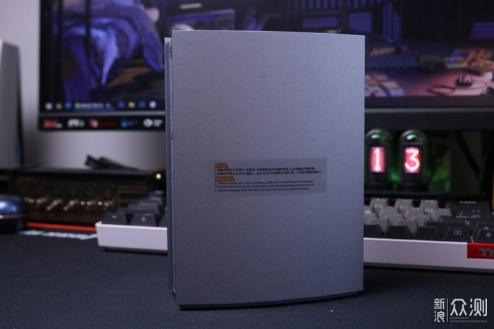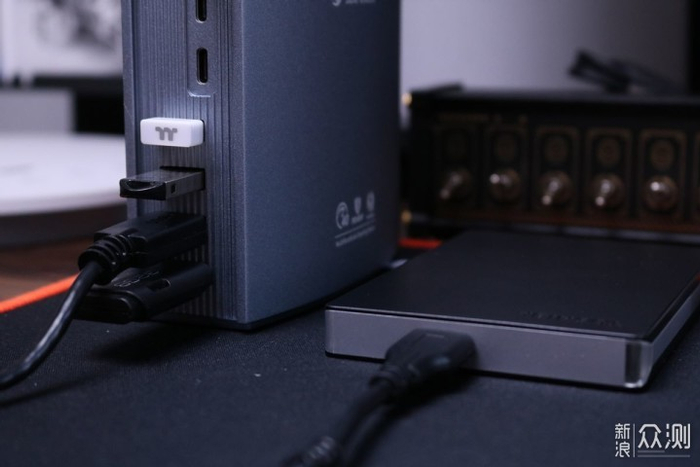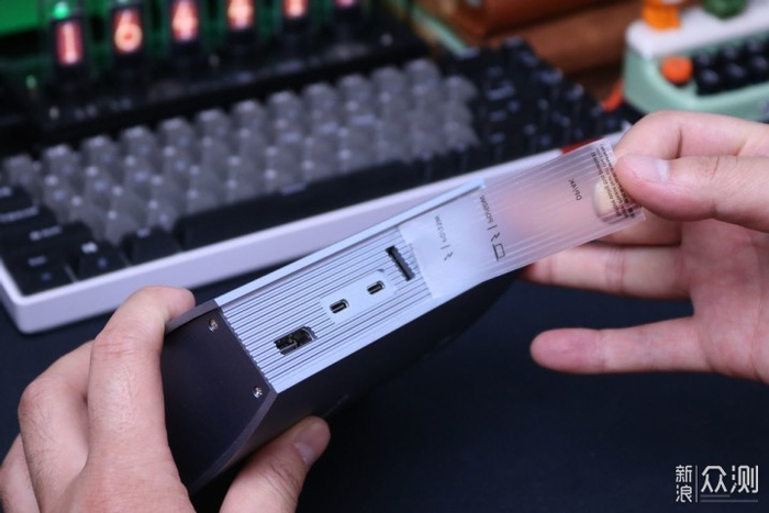 拓展坞两侧是接口部分,为了给接口很好地保护,采用了塑料贴纸,同时在贴纸上印上了各个接口的属性,也是比较方便我们进行使用的。