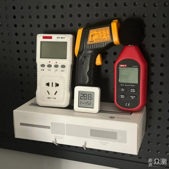 功耗测试,测温枪,温度计,噪音测试,还有一个拍照用的小补光灯