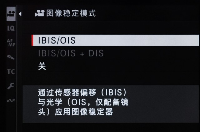 在富士X-H2S的设置中,相机视频防抖包括IBIS/OIS以及IBIS/OIS+DIS两种方式,前者通过传感器位移加镜头OIS防抖组成的双重防抖,后者则在机身和镜头防抖之后增加数码图像稳定器,开启后会对视频进行部分裁切。因此,在测试时,我们分别测试开启和关闭IBIS/OIS防抖,来检验视频防抖的表现。