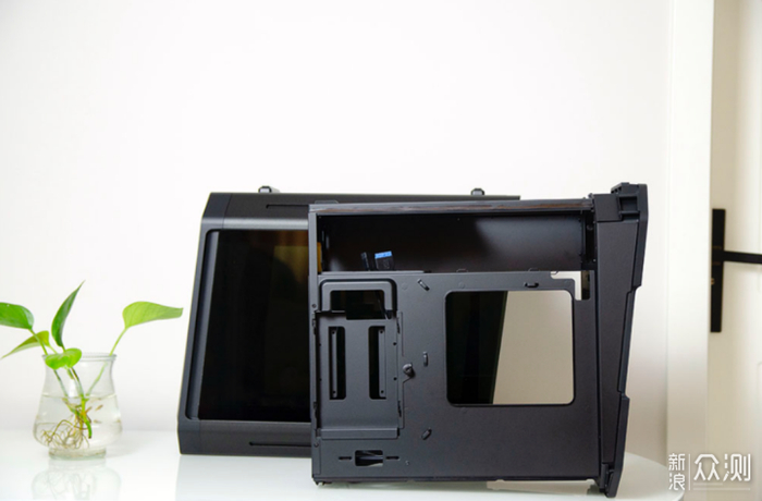 机箱内层自带卡槽板,通过抽拉与前置面板内的金手指连接,一抽一推间完成主机电源的衔接。