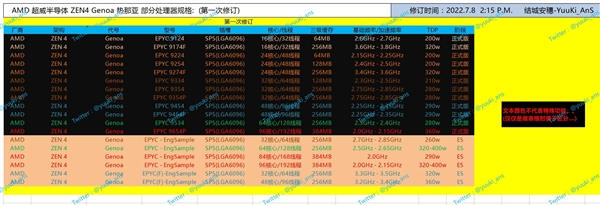 另外还有6款工程样品,96核心的频率热设计功耗有望低至320W、高至400W。