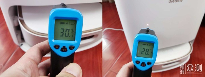 ▲而在烘干抹布的时候,清洁坞内温度为30.7℃,机身外为28.1℃。这温度烘干抹布是需要一点时间的,但是也不会对周围家具家电产生损伤威胁。