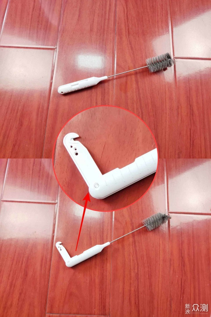 ▲这里单说清洁刷,里面也有点乾坤。在清洁刷的尾部,有折叠收纳设计的刷刀,不仔细看还不容易发现。