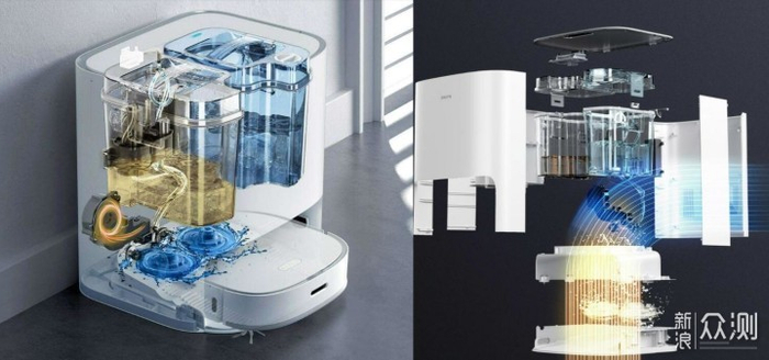 ▲打开清洁坞顶盖,可以看到污水箱和清水箱,容量和W10一样,同样为4L。
