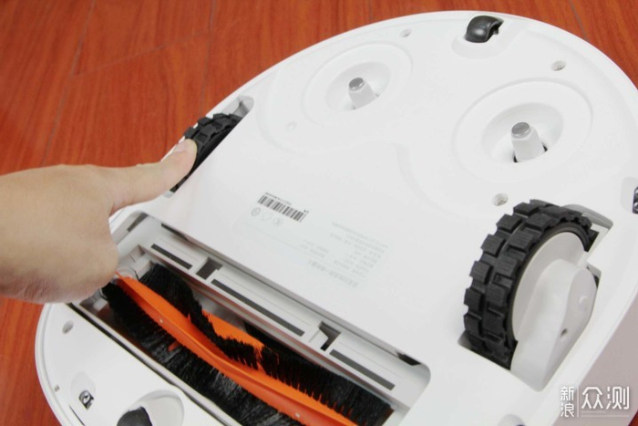 ▲在清洁坞下方为扫拖机器人充电舱,同时也是机器人拖布自动清洗的地方。在清洁坞内部,我们可以看到黑色的信号发射区。在底部的清洗盘上,还可以看到文字提示,根据提示可以让我们快速地将其拆装。拆卸后可以看到清洗盘上有带颗粒的清洗刮条,也得益于此设计,拖布盘在快速旋转时可以借助高速离心力甩掉多余水分,让拖布保持适当的湿度。