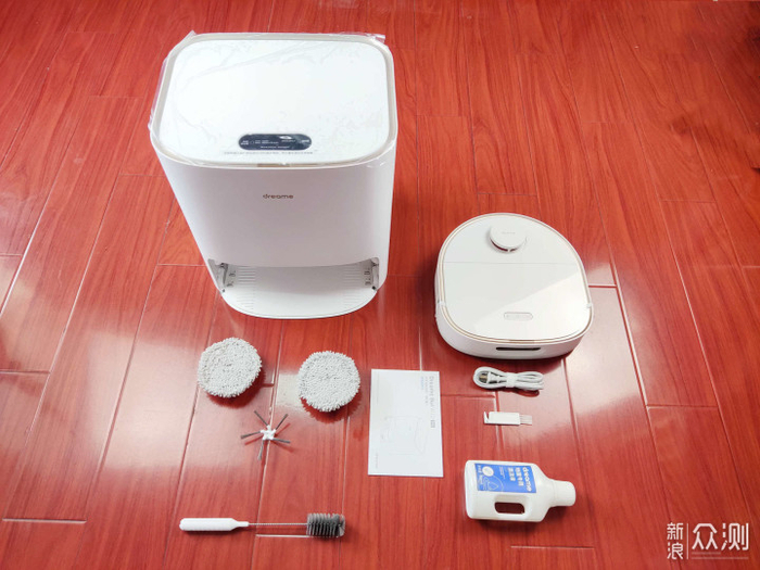 ▲这代W10PRO的全家福里,除了常规的清洁坞、主机、拖布、边刷、电源线、清洁液、清洁刷刀、说明书,还配了清洁刷。