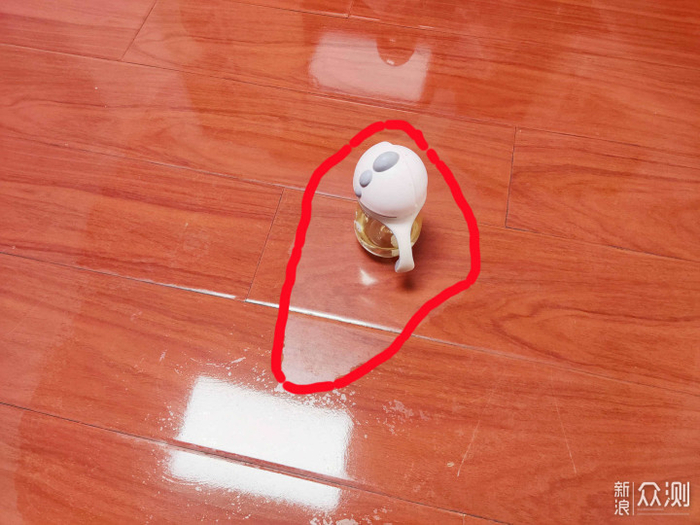 ▲图里可以很明显地看出,机器人绕开的区域未被清扫,水杯周围一圈还是很干的。