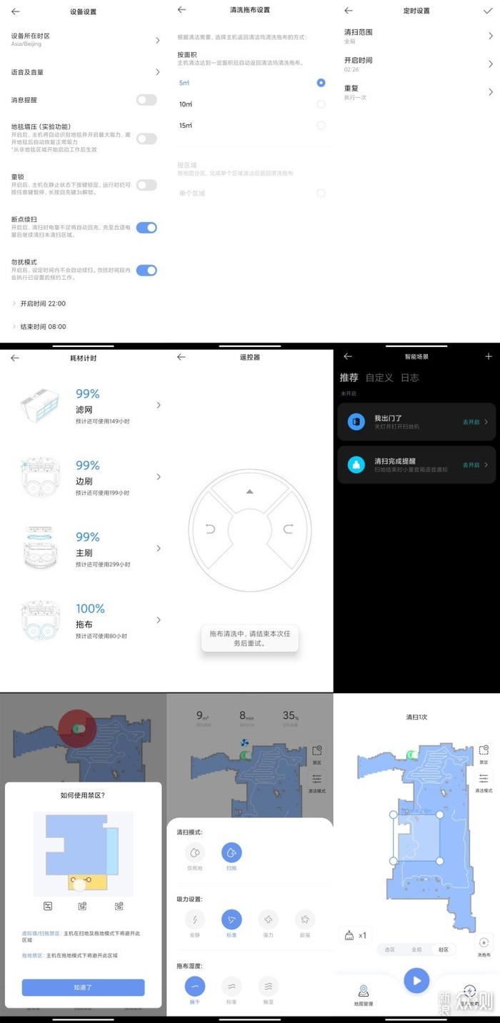 ▲装上拖布盘和边刷,机器会有安装上拖布的提示,随后就可以开始工作了。