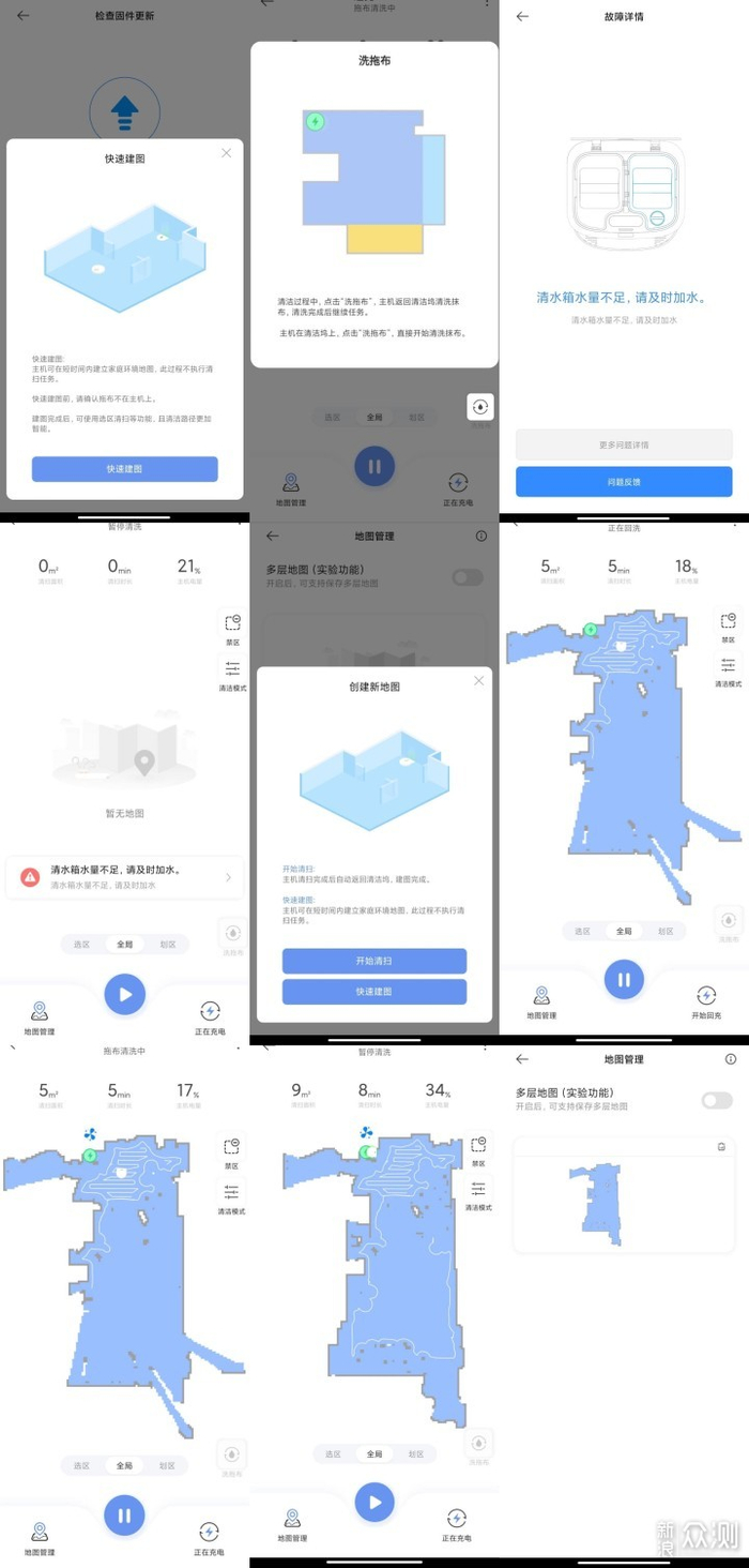 ▲通过相关菜单的查阅,我们能获悉设备各个滤芯的使用情况,也可以选择对应的马力来进行全屋的打扫。从上面的截图里可以看到,APP内是可以建立多个楼层地图,十分适合复式或者别墅的消费者使用。