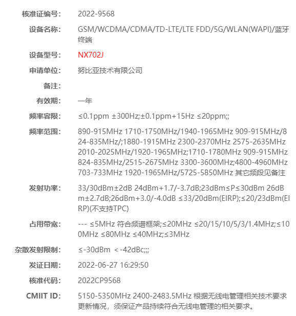 IT之家了解到,一款型号为 NX702J 的努比亚新机目前已通过无线电核准,预计为即将发布的 Z40S Pro。