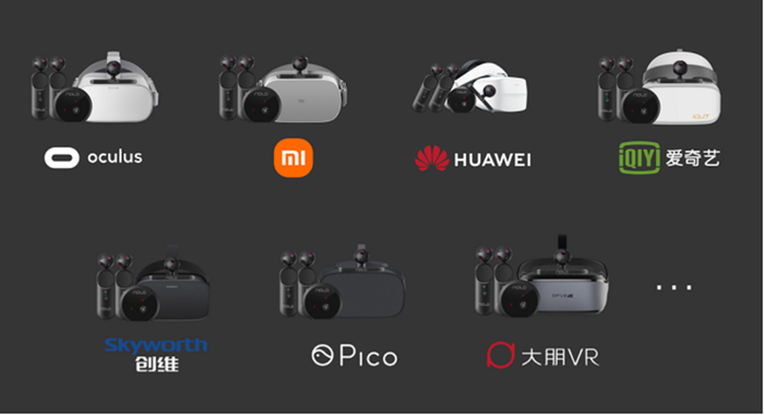 看到Oculus Go的成功,国内诸多VR头显品牌也纷纷跟进,推出了对标Oculus Go的产品——各类3DoF的VR一体机,但厂商不具备6DoF技术的能力,在这样的背景下,NOLO CV1开始作为VR的配件跟一体机厂商一起推动行业发展。相继完成了对华为VR、小米VR、爱奇艺VR、Pico、大朋、等30多家国内厂商主流VR一体机和PCVR头显的适配。