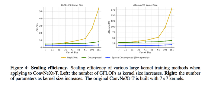 (1)现有的方法可以将卷积核增大到 31x31。但在更大的卷积上,例如 51x51 和 61x61,开始出现明显掉点的现象。