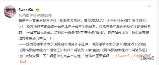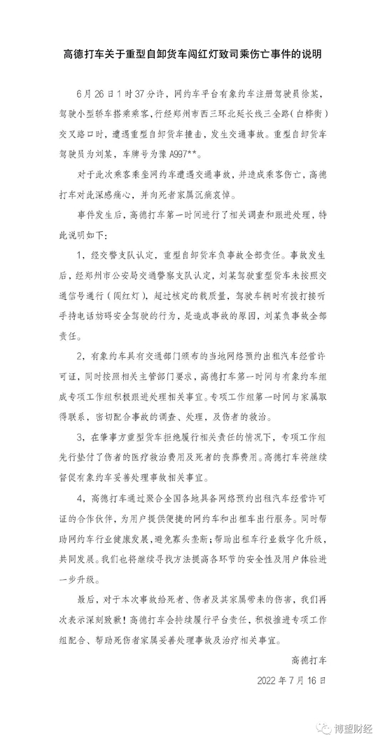 迫于舆论的压力,7月16日,高德打车发布最新公告称:事发后第一时间,高德打车与有象约车组成专项工作组,积极跟进处理事故相关事宜。