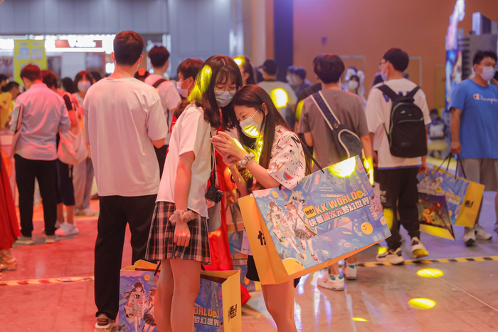 记者在现场看到,萤火虫动漫游戏嘉年华的观众明显因为KK WORLD形成了分流效应,喜爱日漫、游戏的观众主要在萤火虫动漫游戏嘉年华的会场,而以年轻女性为主的喜爱言情、穿越等题材网文、网文改编漫画以及漫剧的用户,则纷纷来到KK WORLD会场,逐一打卡自己喜欢的国漫主题展区。