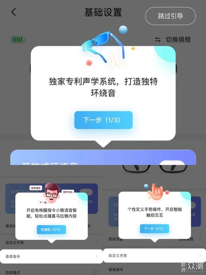声阔智能眼镜提供了两种交互方式,一种是唤醒语音助手进行语音控制,第二种是通过手势进行操作,而语音助手进行语音控制时,甚至不用呼唤小雅,直接说上一首,接听电话等就可进行操作。声阔智能眼镜在日常接打电话中还有一个通话降噪模式,我刚开始还担心这款眼镜在通话的效果上不太好,结果现实情况对我啪啪打脸,接听电话的人,如果我不告诉他,我在使用智能眼镜来和他进行对话,对方根本没有感觉。