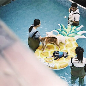 “狗狗们下泳池前,都会做检查,有皮肤病就不能下水,一般根据体形收费40元-60元不等。”该店老板罗浩然称,对于初次来游泳的萌宠,会提供狗狗救生衣、游泳垫等,还有专员在水中保护。此外,还提供辅助减肥等服务。“由于天热,游泳的狗狗多了,一般需要提前预约。”