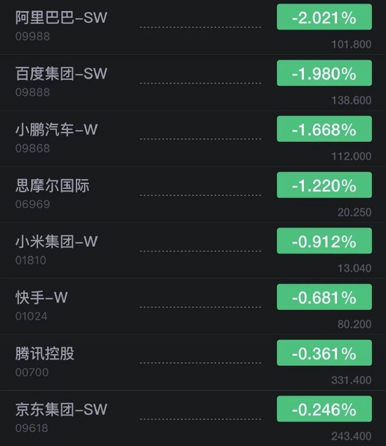 香港恒生指数开盘跌0.61% 百度跌近2% 新浪科技 新浪科技频道官方账号 2022.07.1909:21 关注 港股分时 新浪科技讯 7月19日上午消息,香港恒生指数开盘跌0.61%,恒生科技指数跌0.66%。阿里巴巴跌2%,百度跌近2%,小鹏汽车跌超1%。
