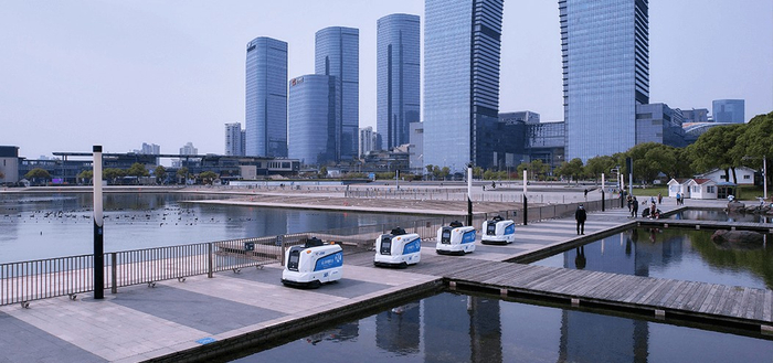 一个月后,云创智行从全国十余家企业中脱颖而出,携手中国电信中标了苏州金鸡湖景区(国家5A级旅游景区)无人清扫运营项目,在金鸡湖景区投放了5台自主研发的YC-200无人驾驶清扫车组成作业车队,在景区这样对环卫频率、质量都有高要求的场景,协助了环卫工人的工作,帮助景区提高了环卫效率,节省了环卫开支。