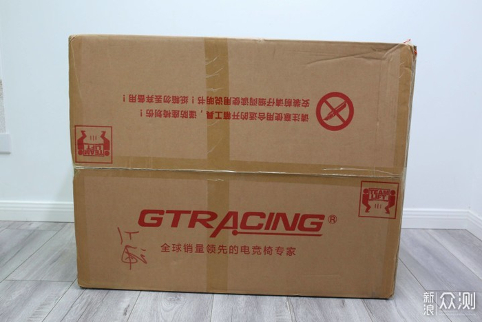 GTRACING电竞椅的外包装十分简单,感觉箱子很大,箱子正面上方是运输和安装注意事项,下方有一个巨大的“GTRACING”logo,底面有一排小字“全球销量领先的电竞椅专家”,显示出这款电竞椅不俗的产品特质。