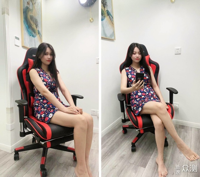 这款电竞椅其实也挺适合女生使用,楼主是女生,就挺喜欢这种红黑色调,椅子的造型和款式也很符合女生的审美,闲暇的时候坐在上面休息片刻,玩一会手机,刷刷小视频,看看微博微信,真的觉得十分惬意!
