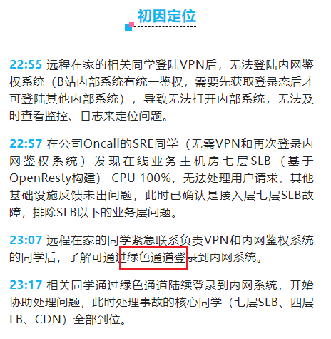 就这样,被占满的CPU一口气把别的业务也带崩了。还得前面提到的在家的B站程序员没法在家通过VPN来抢救网络么?没错,他们登录内网的时候,其中有部分服务也需要通过内网来处理。。。