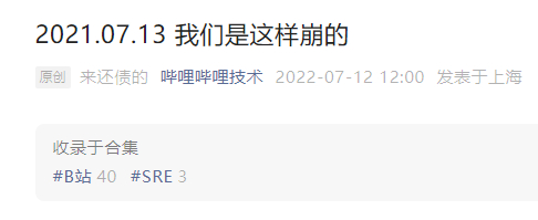 不知道差友们还记不记得,去年的7月13日,B站发生了一件大事。它毫无征兆的崩了。。。(如果忘了的小伙伴,可以看 这篇文章 )