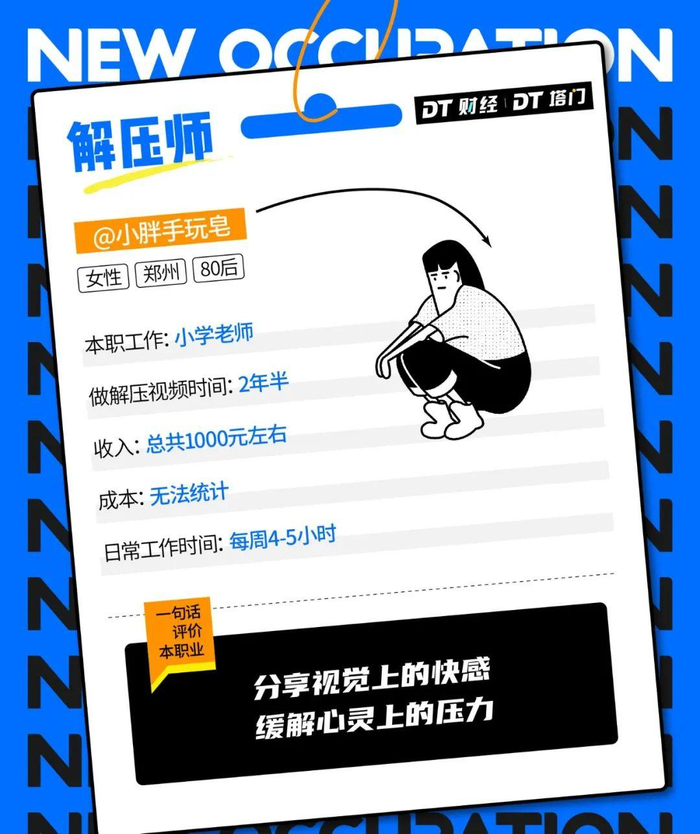 即便现在多数视频解压师仍然被作为副业,但随着解压需求的激增,不少人通过做解压视频也月入过万,它同时也成为一种为自己减压的职业。