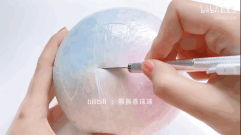 (切胶带球,图源:B站@熊熊卷球球)