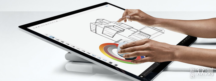 这感觉非常像曾经的设计创意屏天花板的Microsoft Surface Studio上搭配的实体旋钮,旋钮的方式非常适合进行精细的参数调节,可以很方便的一边看着图像上的色彩变化,一边来回调节参数。
