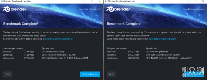 Blender是一款动画制作软件,自带测试程序,可以让CPU与GPU单独进行渲染测试,能够反映实际渲染时的表现。