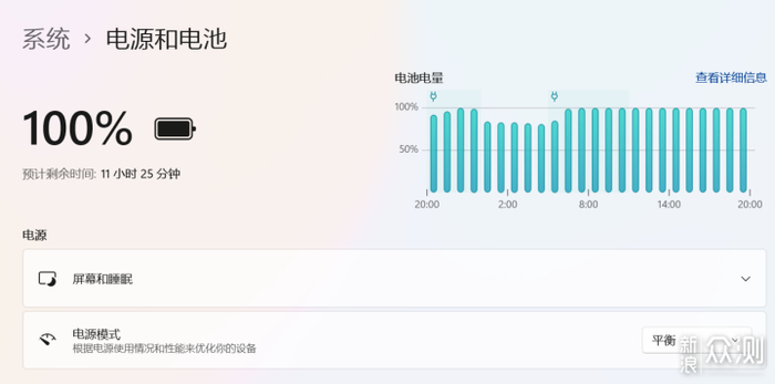 续航满电状态风扇开启标准模式下,系统给出的预计是11小时25分。