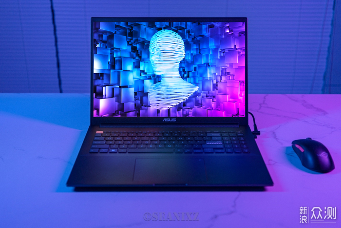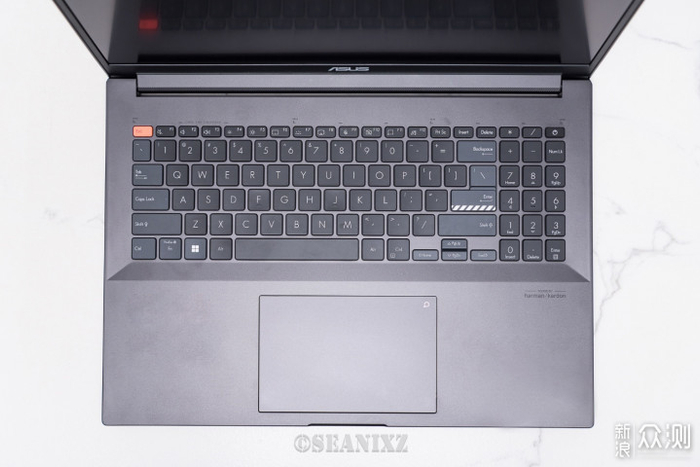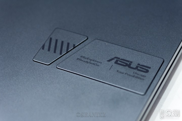 A面壳体上有一个浮雕设计,印上了ASUS LOGO,有点电影胶带的设计元素,映衬了影音创作类设计本的定位,低调展示了辨识度,这也是华硕设计本的家族式元素了。