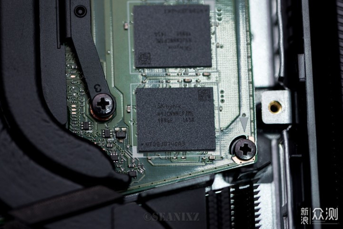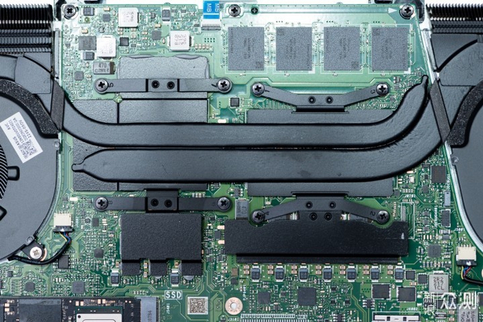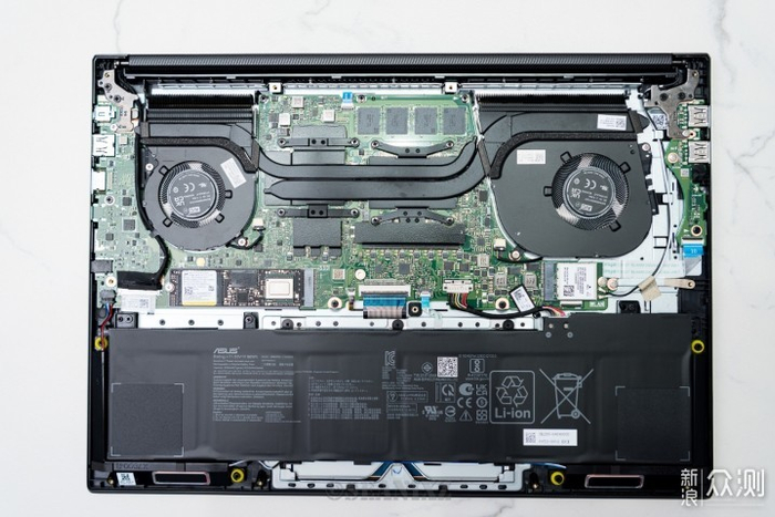 初看之下,可以看到大面积的电池,一共6枚聚合物锂电芯,容量96Wh,确实很大一部分的重量来自于这个电池。