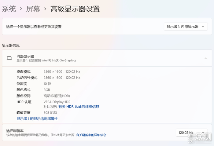 16英寸 2560x1600 100% DCI-P3广色域屏色彩不错,500尼特亮度也能满足户外使用的需求。120Hz刷新率跟上了视频创作的时代,色域切换、杜比视界支持也是创作者会有的需求。