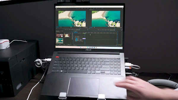 实测体验还不错,比如Pr中可以通过转动华硕虚拟旋钮逐帧查看,用起来比鼠标更顺手,精度更高,习惯一段时间后可以高效进行创作。