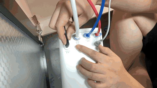 最后插入电源将机器放到安装位就算完工了。ELKAY艾肯ECRO400E净水器出水管的接口由从前的侧后方改到了顶部,这在安装和维护上要方便很多,这个设计还是很贴心的。