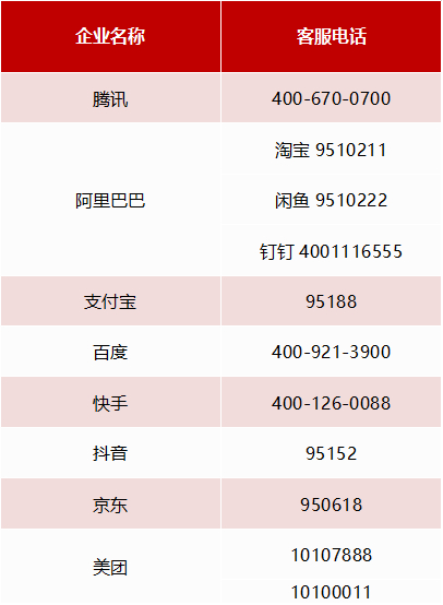 ③ 如果用户仍无法解决异议账号,可以拨打企业的客服电话(见下方附表)进行咨询。