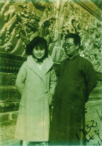 1932年,谢家荣与夫人在北京北海公园留影。
