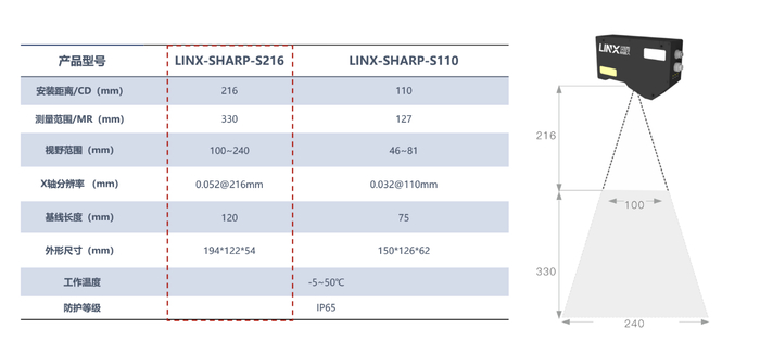 SHARP系列相机采用线激光成像技术,精度稳定在0.032-0.052mm,最大帧率可达20K,主要性能指标达到行业领先水平;外观造型更加小巧紧凑,易于集成。