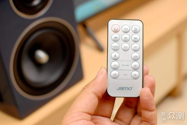 附件方面, 除了标配的音频线和电源线之外,随机还配送有一个小巧的全功能遥控器,如果你想葛优躺来欣赏美妙的音乐,或者观看电影,用它来操作还是挺方便的。