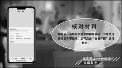 记者在采访中看到,来莲湖区办事的企业和群众在市民中心服务大厅抽号后,手机移动端会即时收到“抽号通知”和“材料核对通知”;当排队人数剩余1人时,还会收到“预叫号通知”。窗口审查后,会收到前文提到的电子版“三个一”受理单,标明是否通过审查、另需准备何种材料?而通过审批后,电子证照将直接推送到办事人的移动端,让企业和群众办的明白、更加舒心。