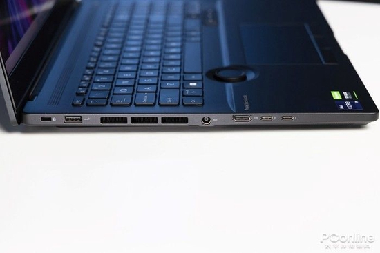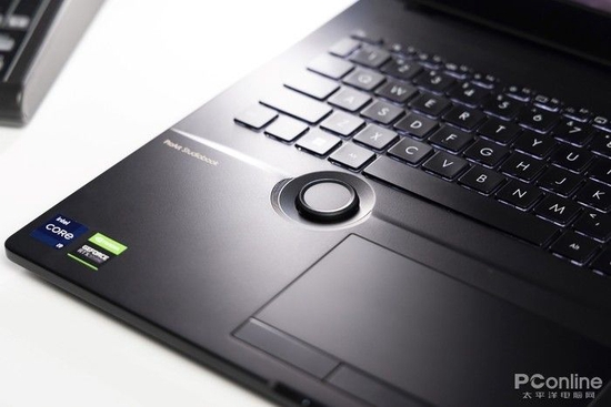 在C面左侧掌托位置配备了实体的华硕旋钮,可通过自带的“创作者中心”软件进行自定义功能配置,增加如调节亮度、音量的系统操作,或者添加Adobe全家桶的相关快捷指令,提高工作效率。