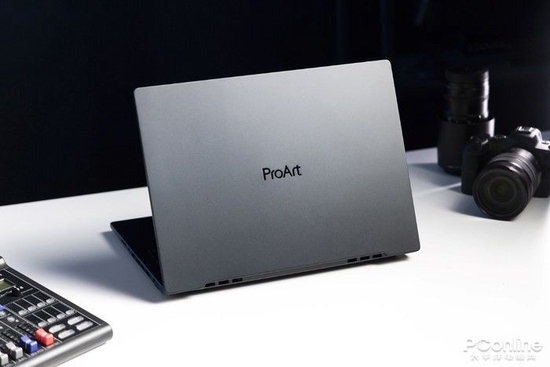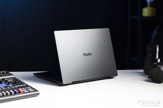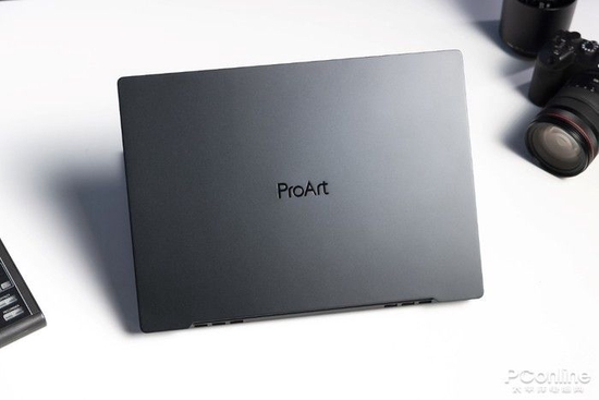 首先,外观方面采用了黑色作为主色调,且没有过多的线条对机身进行装饰。A面中间的“ProArt”logo在宣示这就是为创作者而生的产品。