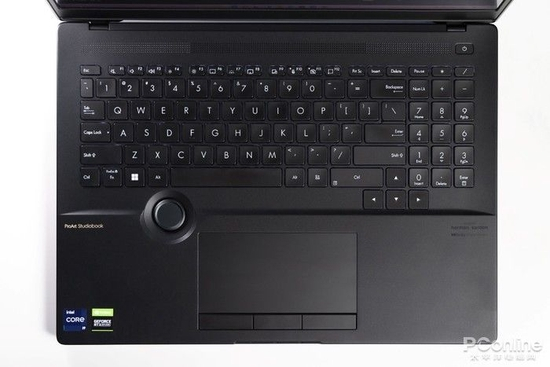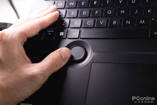 华硕旋钮设计的位置也恰到好处,当我们将左手放置在键盘的标准输入位置时,大拇指刚好是在华硕旋钮的附近,方便我们使用旋钮进行操作。而且由于旋钮是物理式设计,基本不会有误触风险。
