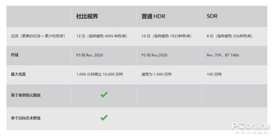 如今HDR影视内容非常火爆,最常见的HDR片源除了HDR10,就是杜比视界。杜比视界是目前HDR的最高标准,同时也是兼容性极佳的HDR标准——杜比视界影片中会包含有动态元数据,可逐帧优化来适配我们当前显示设备的色彩空间和亮度。