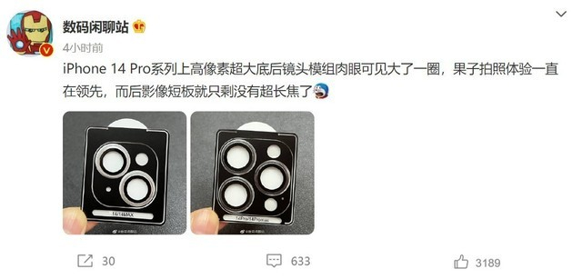 iPhone 14 Pro系列后摄模组曝光:尺寸更大更厚 没有超长焦