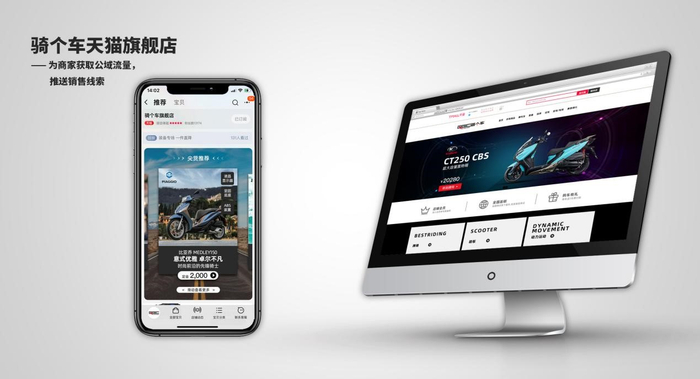 此外流量端与天猫合作开设首家摩托车卖场型旗舰店,以及作为天猫两轮车行业安装服务商,为商家推送更多销售线索和用户到店,帮助商家精准获客。在业务端,联合生态合作伙伴为商家提供装备零部件的采购与代销,以及金融保险等服务,帮助商家降本增效。