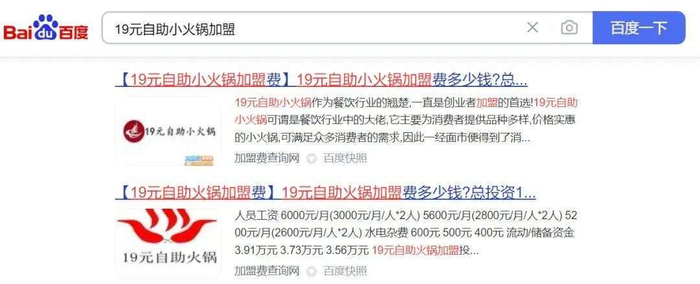 而在网上,随手搜“19元小火锅加盟”更有大把保证让投资者“轻松月入过万”的韭菜项目。