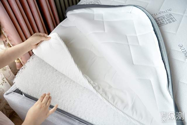 因为每块芯材都是由致密的纤维组成,支撑力非常不错。我一屁股坐在床沿,没有任何塌陷或倾斜现象,包括我老公170多斤的大体重,也都很好的承托住了。